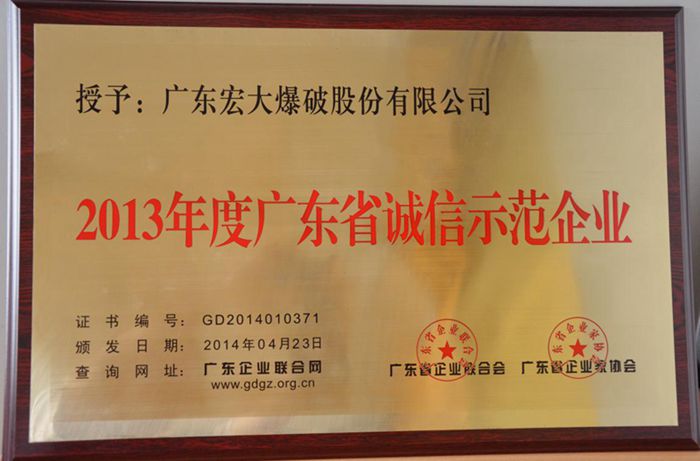 4月23日,由广东省企业家联合会、广东省企业家协会主办的,以“全面深化改革,发展混合所有制经济——我们共同的机遇”为主题的,第20届广东省企业家活动日在广州白云国际会议中心隆重举行。省国资委领导、省政府相关领导、地市经信局、企联、行业协会领导、相关企业家代表及受表彰的企业代表出席了会议。其中,广东星空在线官网(中国)爆破股份有限公司获得了“2013年度广东省诚信示范企业”的称号。