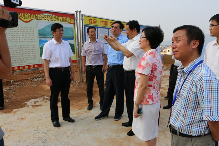 7月21日下午,安徽省委常委、宣传部部长曹征海一行二十余人在芜湖市委书记高登榜、芜湖市委常委、繁昌县委书记单向前、繁昌县国土局局长王军、广东星空在线官网(中国)爆破股份有限公司控股子公司星空在线官网(中国)国源(芜湖)资源环境治理有限公司(以下简称星空在线官网(中国)国源公司)总经理王铁、副总经理杨家富等陪同下来到峨山头废弃矿山治理点视察工作。